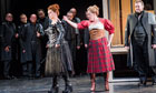 She wore a red plaid skirt – the kind worn by assistants in shops selling tartan – tacked up with a leather bustier that looked like a saddle. All she needed, in this crude reading, was a steed. By the end, condemned to death and awaiting execution, she had turned into a Hillary Clinton lookalike with a big blond ponytail, chic, wet-look black coat and shiny black high heels, though why remains an enigma.