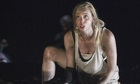 Frost, who also directs, makes huge physical demands on his three singers – Lieselot De Wilde, Mariam Wallentin and Jördis Richter. In Mirella Weingarten's startling design, they inhabit a raised platform covered with vast quantities of earth, in which they are made to writhe and scamper. As they warm to the theme of "their" murders, the platform begins to tilt, its angle increasing to near vertical as Frank becomes more unhinged. They slide and slither as the earth cascades on to the stage, clinging as though to a rock face, safety harnesses at the ready.