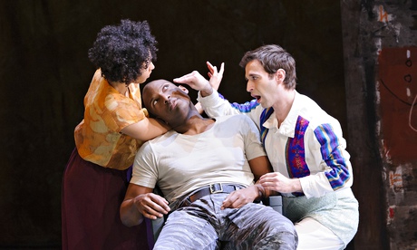 Songs and anthems by Purcell have been added to make a full evening’s drama, supremely well conducted by Laurence Cummings. The ENO orchestra, in a raised pit and with additional continuo players (unnamed, but they took a well-deserved bow), were strong in force and volume but played with period instrument sensibility: a difficult task given the delicacy of the music and the size of the theatre. All praise to ENO chorus too, dressed in bright, Age of Aquarius cottons and denim, who can somehow sing Wagner’s Mastersingers one night and baroque counterpoint the next with equal authority.