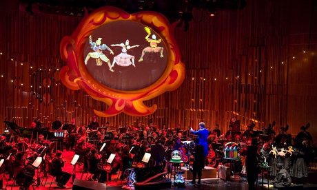 The players become a rather naughty group of participants at the ballet’s Shrovetide fair, as Fitch’s cameras glide round the orchestra, homing in on percussionists surreptitiously swigging vodka, or the double bass section peering at a peep show. We’re encouraged to clap along and scream in terror at a dancing bear. Music director Alan Gilbert, sporting a spangled blue coat, plays the Magician himself, his extravagant gestures bringing both puppets and music to life. The puppetry is beguiling and touching, and entirely true to Stravinsky’s vision that figures made of wood and cardboard have emotions and souls. If there’s a flaw, it’s that we become more fascinated with how it looks than how it sounds, and that Gilbert’s clean, clear account of the score sometimes takes second place to the visuals.