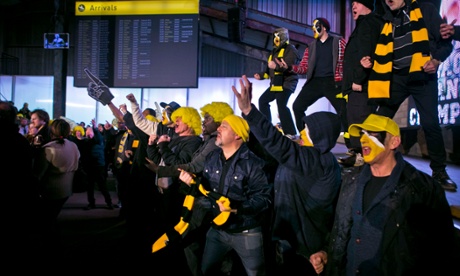 Designed by Stuart Nunn, Vick’s production sites the action in an airport-arrivals hall in the present day, complete with a huge LED screen and tannoy announcements. The audience becomes the thronging passengers, marshalled by semi-automatic-toting security guards around another of the cavernous spaces in the post-industrial nether regions of Birmingham that BOC seems to able discover so readily. There are some striking set pieces, especially the masked march of the warring factions leading up to the climactic riot, and a strange S&M, pill-popping interlude preceding Astron’s intervention; there are the sort of eruptive spectacles that Vick and his mix of professional and committed amateur performers present uniquely well. But in this acoustic, words are constantly problematic, and not enough of them come across in the crucial arias of self-awareness from Lev, Nadia and the nurse Hannah (Chrystal E Williams) on which the whole drama depends.